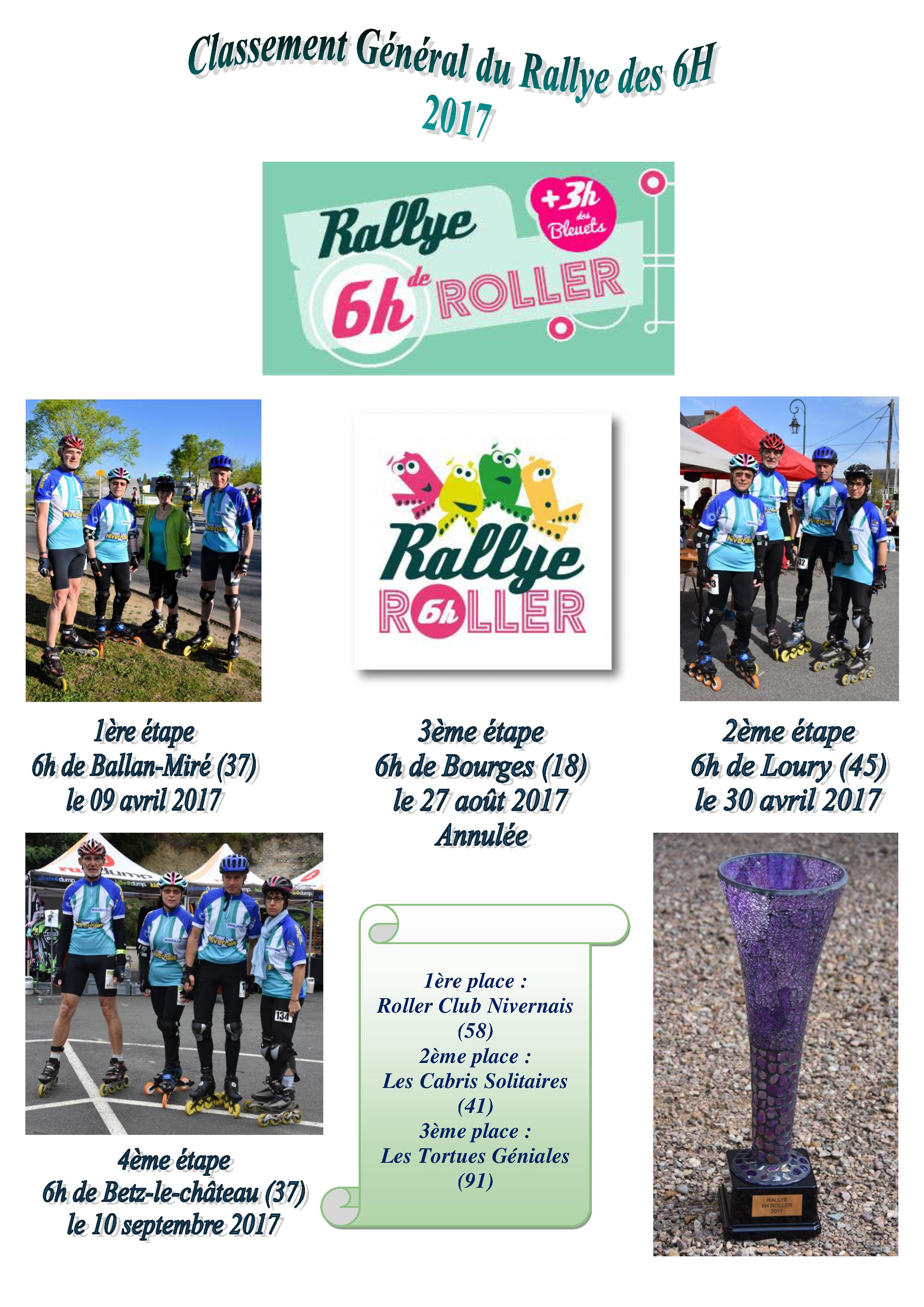 CourseDimanche 15 octobre 2017 Marathon de Paris![]() 1er marathon Roller de Paris sur les quais et les voies sur Berge de la Seine. Plus de 2800 patineurs ont pris part à l'événement sous un soleil radieux. Nous étions quatre du RC Nivernais pour l’événement Christine, Pierre, Philippe et Maurice, Course magnifique mais éprouvante cause le bitume granuleux et quelques secteurs pavés, et surtout, les harassantes montées à chaque tunnel cassant le rythme et les jambes. Sans compter les Parisiens qui tentent de traverser la chaussée et quelques blessés gisant sur le bas-côté, qui poussent à rester raisonnable et à lever le pied. Dans la catégorie masculine 1er Ewen Fernandez (Powerslide Matter) 1:00:48 - 40.01 km/h Chez les seniors femmes, 1er Flavie Balandras 01:08:33 - 35.48 km/h Samedi 23 septembre 2017 Pistes Michelin à Ladoux (63).![]() "Participation de Maurice et Mireille pour la découverte du circuit des pistes Michelin où nous avons passé une belle après-midi ensoleillée avec l'équipe de Rambouillet et Vichy." Dimanche 17 septembre 2017 - Semi-Marathon de Lyon![]() Le départ fût donné à 13h30 sur un circuit mouillé et de la pluie durant toute la course pour les 163 participants dont 2 représentants du Roller Club Nivernais, Maurice et Mireille ![]() Dimanche 10 septembre 2017 - Rallye des 6h de Betz le Château![]() "Pour la dernière étape du Rallye des 6h, la course s'est déroulée avec un temps couvert, des apparitions du soleil et beaucoup de vent pour les 45 équipes dont 119 participants. L'équipe de Nevers, composée de Maurice, Philippe, Christine et Mireille, termina à la 2ème place de la catégorie Super Vétéran, les 1er étant l'équipe de Limoges et les 3ème "Les Cabris Solitaires". A la suite de cette étape, le Classement Général du Rallye des 6h est: 1ère place : Roller Club Nivernais, 2ème place : Les Cabris Solitaires, 3ème place : Les Tortues Géniales, pour la catégorie Super Vétéran. Rendez-vous l'année prochaine pour un nouveau Rallye des 6h." Dimanche 10 juin 2017 |